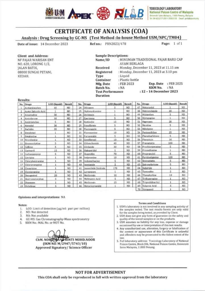Jangan Risau ! Tonik Ayam BERLAGA Ada Kelulusan & Sijil Sah
